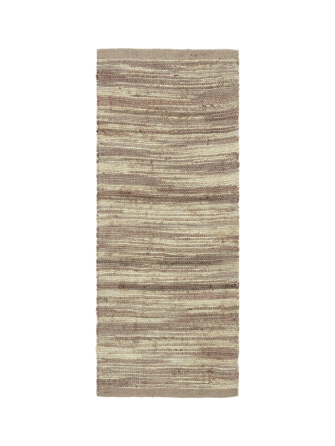 Vacker vävd ljungmatta av jute i naturliga färger. Mått 70x200 cm. Vi rekommenderar att använda halkskydd så att mattan fäster bättre mot golvet och minskar halkrisken.